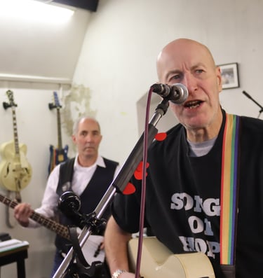A group of people who want to play music! A few years getting here, but no egos in this band! A willingness to try anything and see what works.
