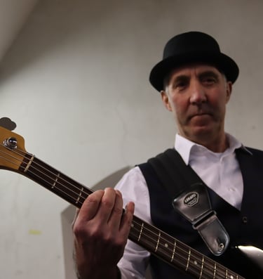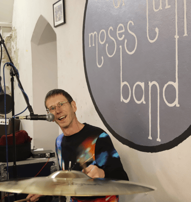 Pete the beat is happiest laying down rock and funk beats to get crowds to their feet. He also adds subtle percussion to enhance the mood along with backing vocals.